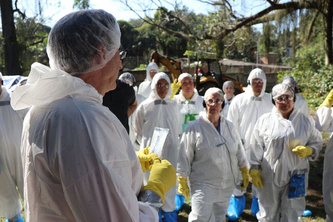 Río de Janeiro, 03 de agosto de 2023 (PANAFTOSA/SPV-OPS/OMS) – Del 31 de julio al 3 de agosto, 24 profesionales de los servicios veterinarios oficiales de Brasil, Bolivia, Colombia, Chile, Costa Rica, Ecuador, Guatemala, Panamá, Perú, Paraguay, El Salvador y Uruguay participaron del taller de “Gestión de Alta Mortalidad en animales en emergencias de Influenza Aviar”, impartido en el Centro Panamericano de Fiebre Aftosa y Salud Pública Veterinaria.