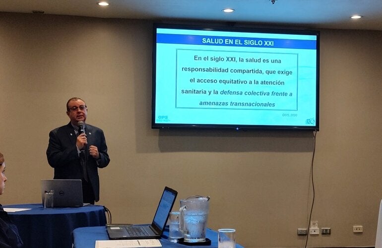 El Dr. Salguero mencionó que “el sistema de salud pública mundial es tan fuerte como su eslabón más débil”, de allí que se requiere compromiso de todos los Estados, incluyendo respaldo político, coordinación intra e intersectorial, así como funciones operativas, entre ellas la comunicación de riesgos.