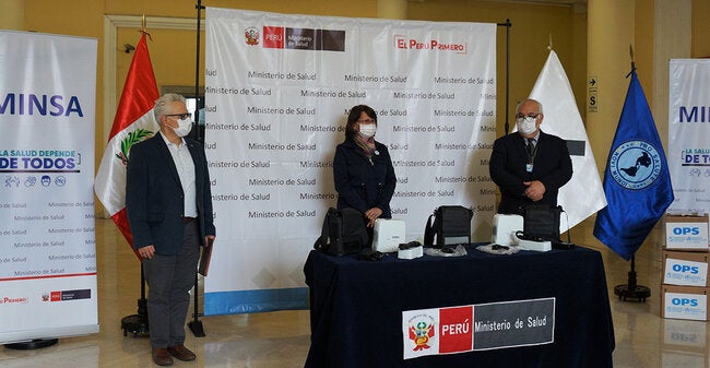 El Dr. Rubén Mayorga, representante de la OPS en Perú, indicó que con esta donación se daba respuesta a un compromiso expresado luego de una solicitud de la Ministra para dotar a la institución con estos equipos que son de gran utilidad para las zonas más alejadas del país.