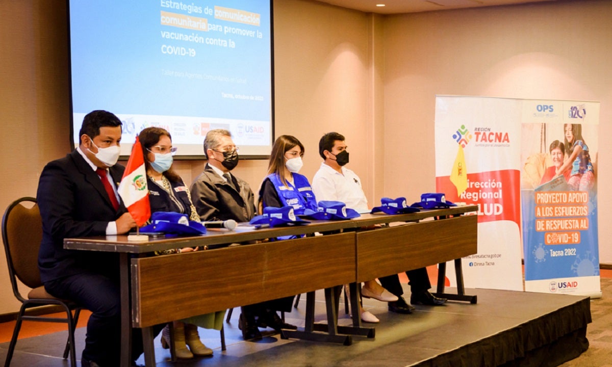 En el marco del proyecto “Plan de Rescate Americano” (ARP), los días 24 y 25 de octubre, 70 Agentes Comunitarios de Salud (ACS) de las provincias de Tacna y Tarata fortalecieron sus conocimientos y capacidades para la promoción de la vacunación contra la COVID-19 por el Ministerio de Salud, la Dirección Regional de Salud (DIRESA) Tacna y la Organización Panamericana de la Salud.