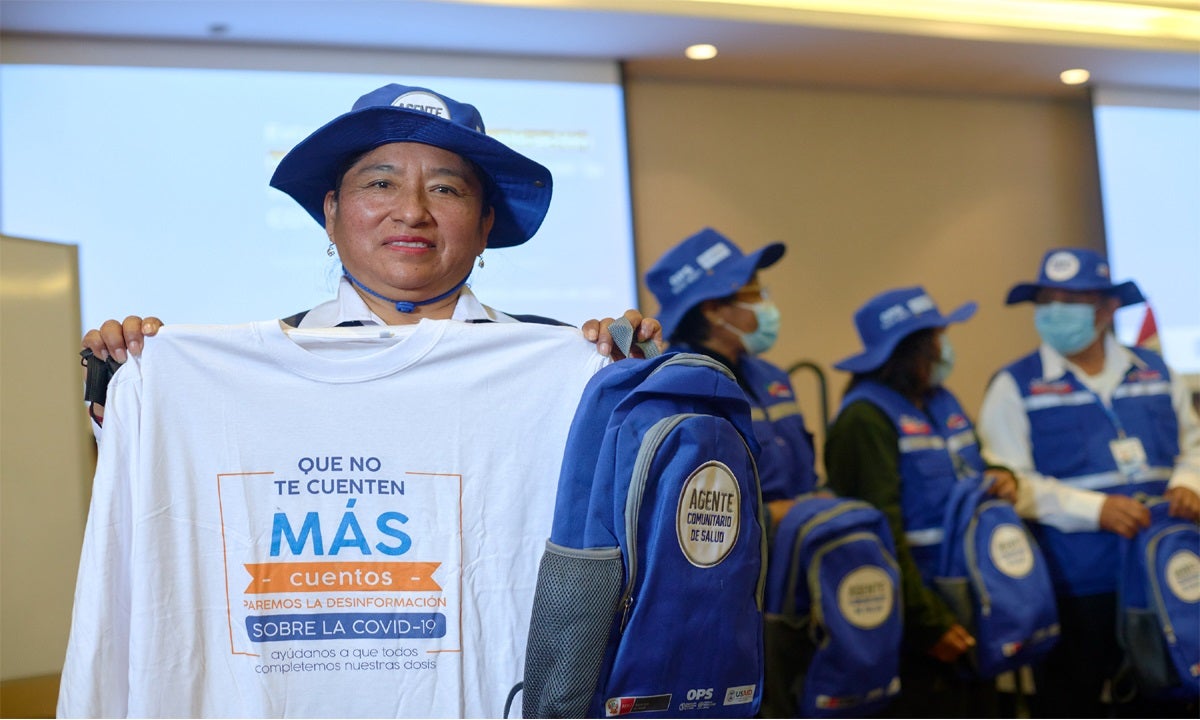 Durante esta actividad, realizada en el marco del proyecto “Plan de Rescate Americano” (ARP), el MINSA y la OPS, con apoyo de USAID, hizo entrega a la DIRESA Tacna y a los Agentes Comunitarios de Salud, kits de indumentaria oficial, así como un polo de la campaña comunicacional diseñada por la OPS y la DIRESA titulada “Que no te cuenten más cuentos. Paremos la desinformación sobre la COVID-19. Ayúdanos a que todos completemos nuestras dosis”.