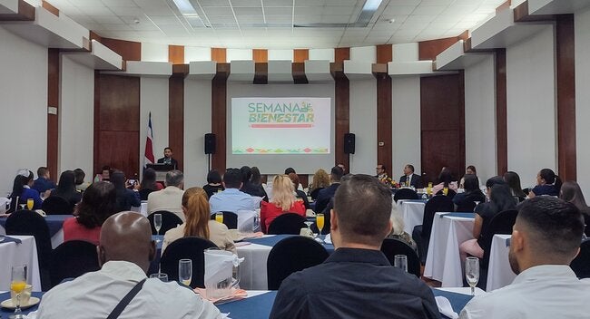 Durante la actividad se llevó a cabo la conferencia “Invertir en bienestar: un compromiso de todos y todas”, impartida por la M.Sc. María Fernanda Meneses, oficial nacional de la OPS/OMS en Costa Rica. En esta sección del evento, se realizó un repaso de la normativa del país sobre el tema y se enfatizó en la importancia de abordar los determinantes sociales de la salud, debido a que el bienestar implica un trabajo multinivel e intersectorial. De manera complementaria, la conferencia incluyó recomendaciones de hábitos que deben promoverse en pro del bienestar, tales como la actividad física, la alimentación saludable, el rechazo al consumo de alcohol y tabaco, así como el cuido de la salud mental a nivel individual y en entornos laborales.