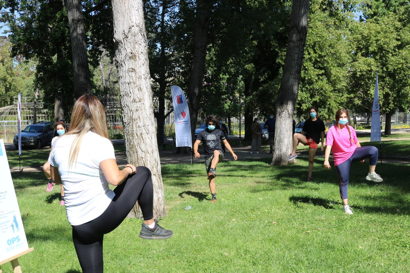 Santiago, 4 de diciembre de 2020 (OPS/OMS) - La secretaria ejecutiva de Elige Vivir Sano, Daniela Godoy, y el Representante de la Organización Panamericana de la Salud/Organización Mundial de la Salud en Chile, Dr. Fernando Leanes, dieron a conocer en el Parque Quinta las nuevas recomendaciones sobre actividad física y hábitos sedentarios que la Organización Mundial de la Salud actualizó después de 10 años.