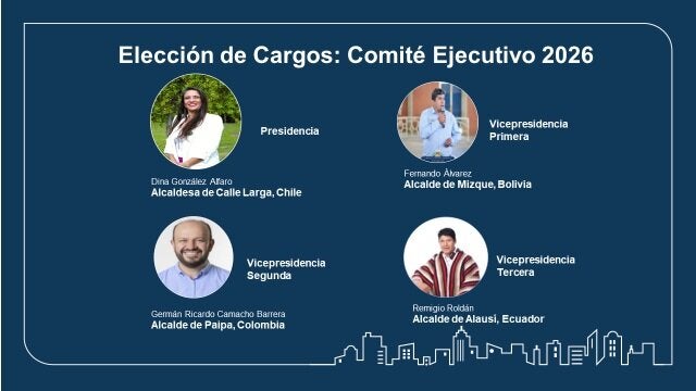 - Vicepresidencia Primera: Fernando Álvarez, alcalde de Mizque, Bolivia.