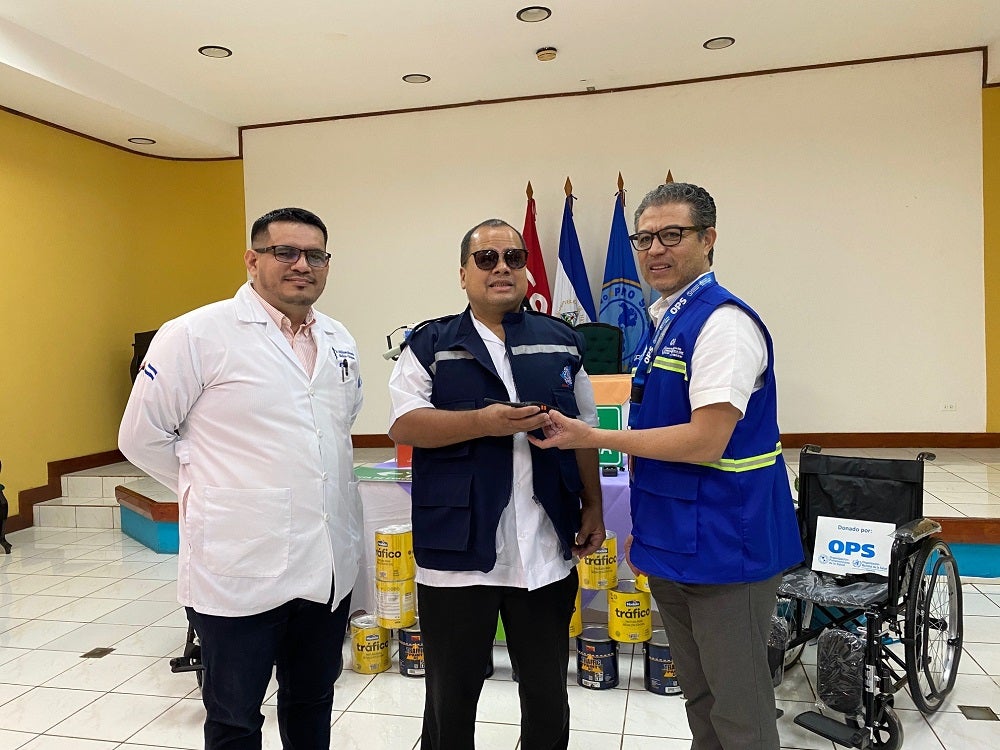 Managua, 5 de diciembre del 2023 (OPS/OMS). Con el propósito de fortalecer los preparativos y la respuesta hospitalaria en situaciones de emergencias y desastres con énfasis en personas con discapacidad, la OPS/OMS dentro del marco de la estrategia INGRID H (inclusión de la gestión de riesgos a desastres en Hospitales), ha realizado donación al Ministerio de Salud de equipos e insumos para cinco hospitales.