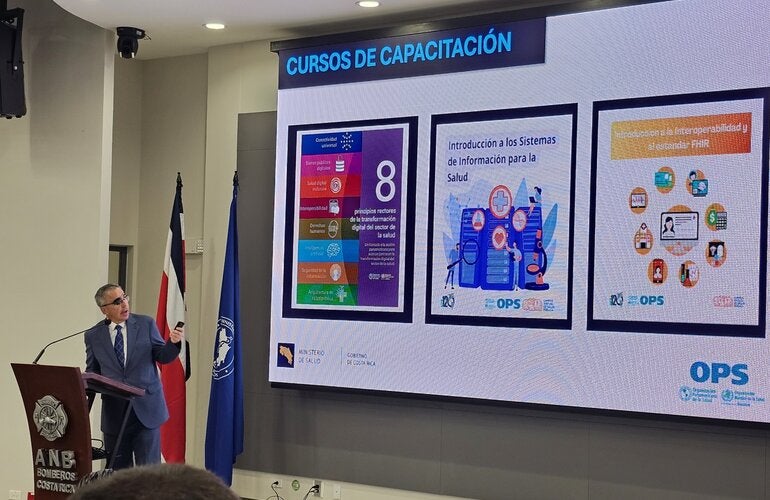 La OPS/OMS ha brindado acompañamiento técnico al país para el desarrollo de la ruta de salud digital en todos los pilares: gobernanza, interoperabilidad, ciberseguridad (en menor medida) y alfabetización. “Debemos recordar que lo que hay detrás de todo esto que parece tan tecnológico es el interés de salvar vidas y llevar bienestar a toda la comunidad. Sin embargo, las competencias deben ser asumidas ahora por los profesionales de la salud y por las universidades para que incluyan estos temas en la formación; no podemos avanzar si hay analfabetismo en salud digital”, mencionó el Dr. Alfonso Tenorio, Representante de la OPS/OMS en Costa Rica.