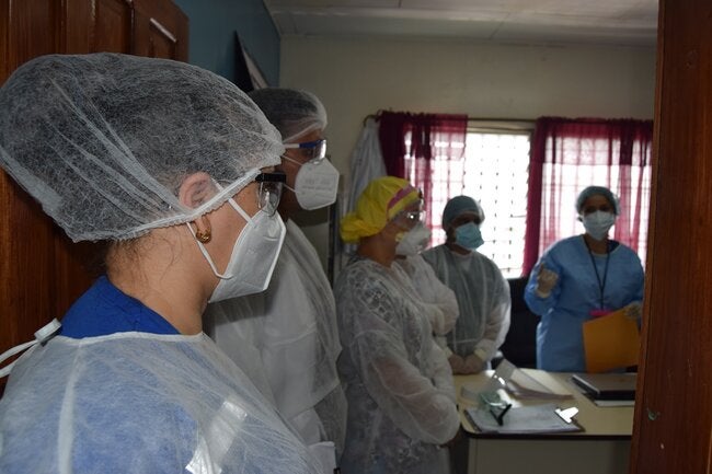 Finalmente, la Representante de la OPS/OMS en Honduras y coordinadora de la Mesa Cesar informó sobre los avances de la cooperación técnica y financiera de la Organización, la cual está basada en los 9 pilares fundamentales del plan de respuesta de la OMS. Destacó el fortalecimiento de la capacidad de los laboratorios nacionales en alianza con USAID para establecer 3 laboratorios adicionales a los dos que ya funcionan en el país; la capacitación del personal de salud a través de cursos virtuales y protocolos humanos y la donación de equipo de protección personal, insumos y equipamiento.