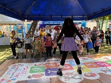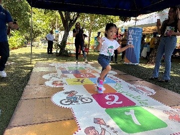 En este marco la Organización Panamericana de la Salud/Organización Mundial de la Salud, promovió la salud y el bienestar de la familia con dos iniciativas: la rayuela saludable dirigida a la niñez, quienes no solamente saltaron y jugaron, sino que también aprendieron sobre la importancia de la higiene, el consumir frutas, verduras y el mantenerse activos.