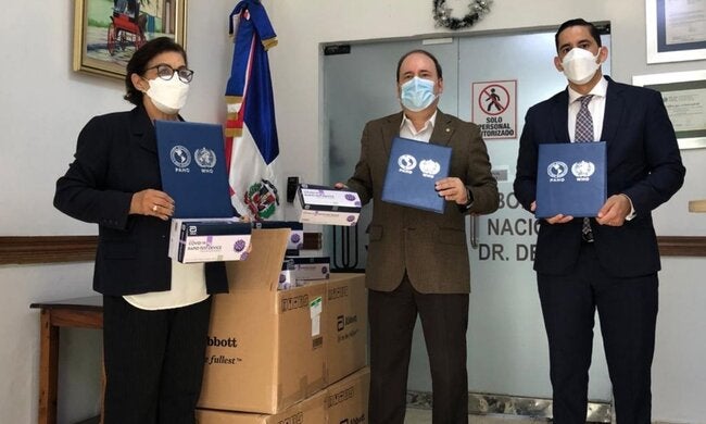 Santo Domingo, República Dominicana. La Organización Panamericana de la Salud/Organización Mundial de la Salud (OPS/OMS) entregó al Laboratorio Nacional Doctor Defilló del Ministerio de Salud Pública (MSP), 15 mil pruebas rápidas de antígenos, capaces de diagnosticar el virus SARS-CoV-2 desde el inicio del contagio con la misma fiabilidad que las pruebas PCR.