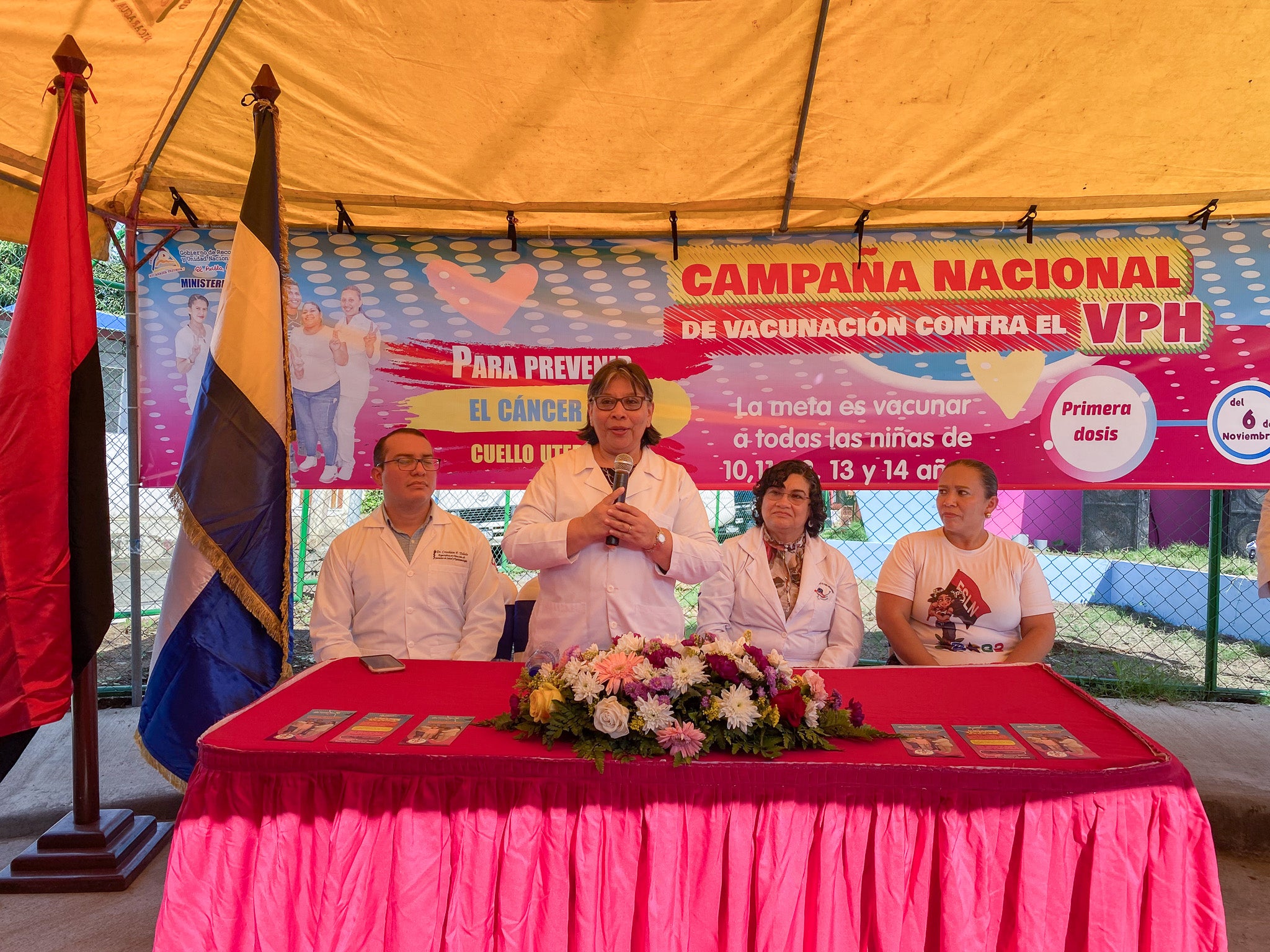 Managua, 6 de noviembre de 2023 (OPS/OMS).- El Ministerio de Salud abre una nueva etapa en la prevención del cáncer cérvico uterino y protección de las niñas en las edades de 10 a 14 años, con la incorporación de la vacuna contra el Virus del Papiloma Humano (VPH), que las protegerá de los tipos oncogénicos de VPH 16 y 18, que ocasionan aproximadamente un 70% de los casos de cáncer cervicouterino causados por el VPH.