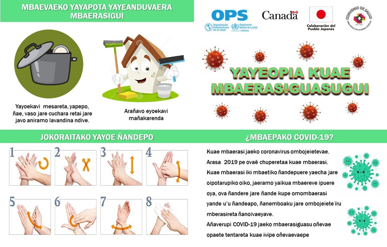 También se han diseñado y producido una Cartilla y un folleto informativo, ambos en castellano y guaraní; dirigidos a la población en general del área rural del Chaco boliviano, principalmente de las comunidades guaranís, para que cuenten con información oportuna y precisa sobre las medidas de prevención de la enfermedad del COVID-19.