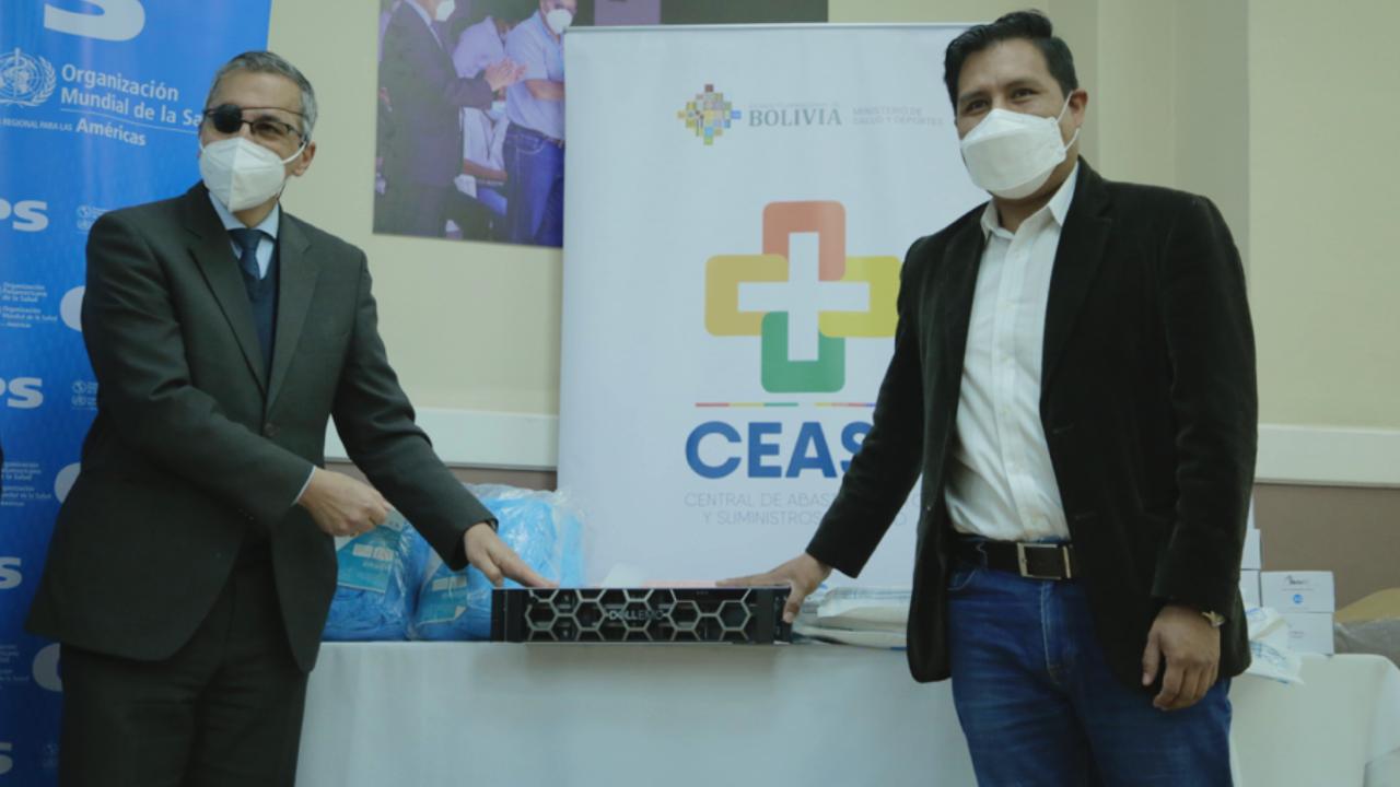 La Paz, 6 de septiembre de 2022 (OPS)- La Organización Panamericana de la Salud/Organización Mundial de la Salud (OPS/OMS) entregó hoy a la Central de Abastecimiento y Suministros de Salud (CEASS), dependiente del Ministerio de Salud y Deportes, un servidor de datos de última generación que pueda alojar el nuevo sistema de información de la CEASS, contribuir al fortalecimiento institucional y a la gestión de medicamentos e insumos sanitarios del país. Así como hizo entrega de un donativo de concentradores de oxígeno, pulsioxímetros y equipos de protección personal para continuar con la atención a la emergencia por COVID-19 y el fortalecimiento de la respuesta en los primeros niveles de atención en salud.