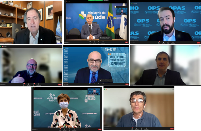 La reunión regional de EVIPNet fue inaugurada por Jarbas Barbosa, Subdirector de la OPS/OMS; el ministro de Salud de Brasil, Marcelo Queiroga; la Subsecretaria de Salud Pública del Ministerio de Salud de Chile, Paula Daza Narbona. Esta sesión fue moderada por Sebastián García Saisó, Director del Departamento de Evidencia e Inteligencia para la Acción en Salud (EIH) de la OPS/OMS y Director Interino de BIREME/OPS/OMS.