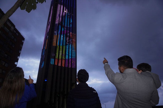 Bogotá, 7 de abril de 2023. La emblemática torre Colpatria de Bogotá se ilumina este 7 de abril, a partir de las 6 de la tarde, como celebración de los 75 años de la Organización Mundial de la Salud (OMS) mejorando la salud pública y del Día Mundial de la Salud, que este año se conmemora bajo el lema “Salud para Todos”.