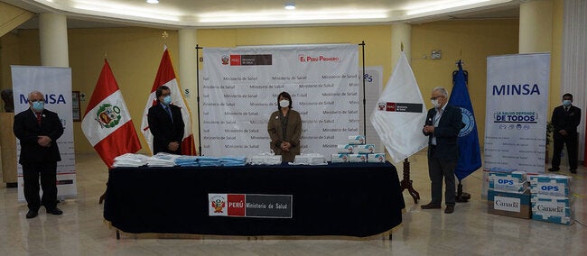 Lima, 8 de octubre de 2020.- La Organización Panamericana de la Salud con el apoyo financiero del Gobierno de Canadá entregó en calidad de donación equipos de protección personal para proteger al personal de salud que viene trabajando incansablemente para salvar vidas durante la pandemia por COVID-19.