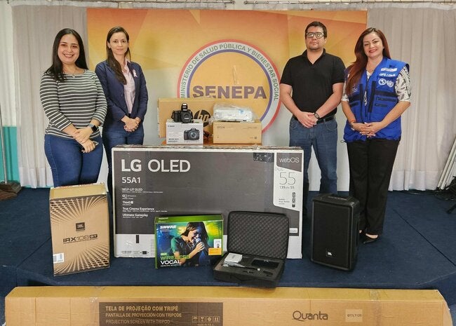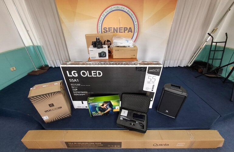 En ese contexto, se hizo entrega de equipos informáticos, en el marco del Proyecto Sistema de Informacion integrado de arbovirosis por medio del sitio colaborativo de OPS/OMS , a fin de utilizarlos en las diferentes capacitaciones presenciales y a distancia de los programas nacionales de enfermedades vectoriales dependientes del SENEPA. Se dotó, además, de equipos audiovisuales que serán utilizados en la sala de reuniones técnicas.