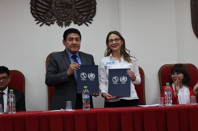 Sucre, 5 de marzo de 2024 (OPS)- La Organización Panamericana de la Salud/Organización Mundial de la Salud (OPS/OMS) y la Universidad Mayor, Real y Pontificia de San Francisco Xavier de Chuquisaca (UMRPSFXCH) sellaron con la firma de un Acuerdo Marco de Cooperación Técnica trabajar de manera conjunta y colaborativa para beneficio de la cualificación de la formación del recurso humano en salud orientado a responder necesidades de la población.