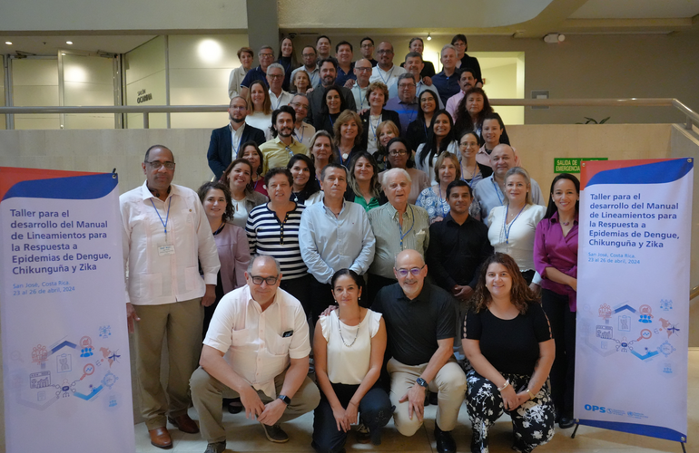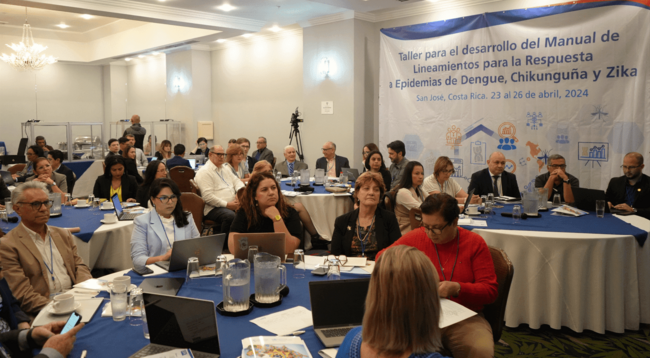 San José, 8 de mayo de 2024 (OPS/OMS). Del 23 al 26 de abril se llevó a cabo en San José el Taller Regional para el Desarrollo del Manual de Lineamientos para la Respuesta a Epidemias de Dengue, Zika y Chikunguña, con la participación de 50 profesionales representantes de los Ministerios de Salud de 15 países de la Región de las Américas, además de funcionarios de la Organización Panamericana de la Salud (OPS), la Organización Mundial de la Salud (OMS) y los Centros para el Control y la Prevención de Enfermedades (CDC).