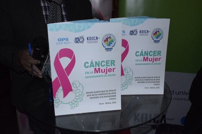 Esta recopilación, actualización e impresión de datos sobre la incidencia del cáncer en las mujeres de dicho departamento contó con el apoyo del proyecto “Mejora del Estado de Salud y la Calidad de Vida en el Altiplano Boliviano”, financiado por la Agencia de Cooperación Internacional de Corea – KOICA y ejecutado por la Organización Panamericana de la Salud/Organización Mundial de la Salud (OPS/OMS), en el contexto de mejorar la calidad y la atención integral de la salud, enfocada en fortalecer con una mayor cobertura y acceso a la prevención y detección temprana del cáncer de cuello uterino y el cáncer de mama.