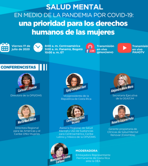 20 de julio del 2020- La Organización Panamericana de la Salud/Organización Mundial de (OPS/OMS) y la Vicepresidencia de Costa Rica organizaron un diálogo de alto nivel sobre "La salud mental en medio de la pandemia de COVID-19: una prioridad para los derechos humanos de la mujer".