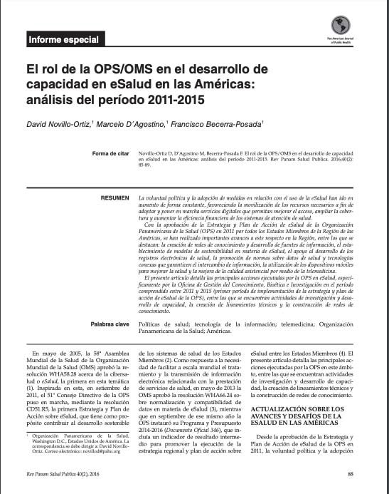 El rol de la OPS/OMS en el desarrollo de capacidad en eSalud en las Américas: análisis del período 2011-2015