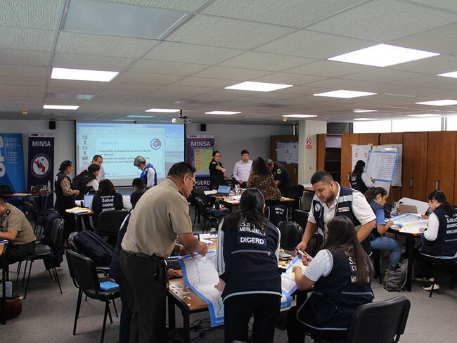 El Departamento de Emergencias en Salud de la OPS en Perú apoya al estado peruano fortaleciendo las capacidades para manejar diferentes riesgos en situaciones de emergencias de salud y desastres, incluyendo las capacidades básicas necesarias para cumplir con el compromiso de implementación del Reglamento Sanitario Internacional (RSI) 2025. De esta manera, el país podrá integrar su propia capacidad permanente de prevenir, prepararse, responder y recuperarse de emergencias humanitarias y brotes de gran magnitud.