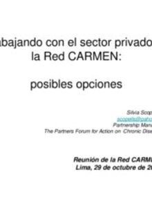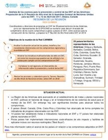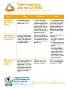 CARMEN es una red formada por los ministerios de salud de la región de las Américas que trabajan juntos para la implementación de la Estrategia Regional y Plan de Acción para la prevención y control de las ENT.