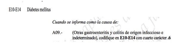 Derivado de lo anterior y aún cuando en ediciones previas a la 2018 de la CIE-10, no se contempla ninguna asociación de diabetes mellitus con gastroenteritis (diarrea), debemos codificarlo como una complicación de la diabetes y asignar el cuarto carácter .6 (Con otras complicaciones especificadas).
