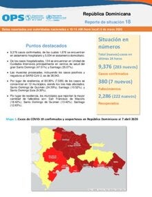 Reporte No. 18 Actualizado al 30 de abril 2020 - COVID-19: Respuesta de Representación República Dominicana en coordinación con el Ministerio de Salud Pública