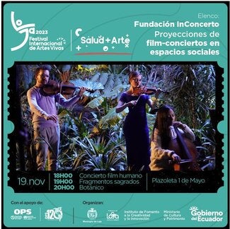 La OPS/OMS y el Ministerio de Cultura del Ecuador construyeron e implementaron, desde 2021, el componente Salud+Arte, dentro del Festival Internacional de Artes Vivas de Loja (FIAVL), como un programa para aportar a la sanación, bienestar y salud mental de grupos de atención prioritaria, artistas y público en general.