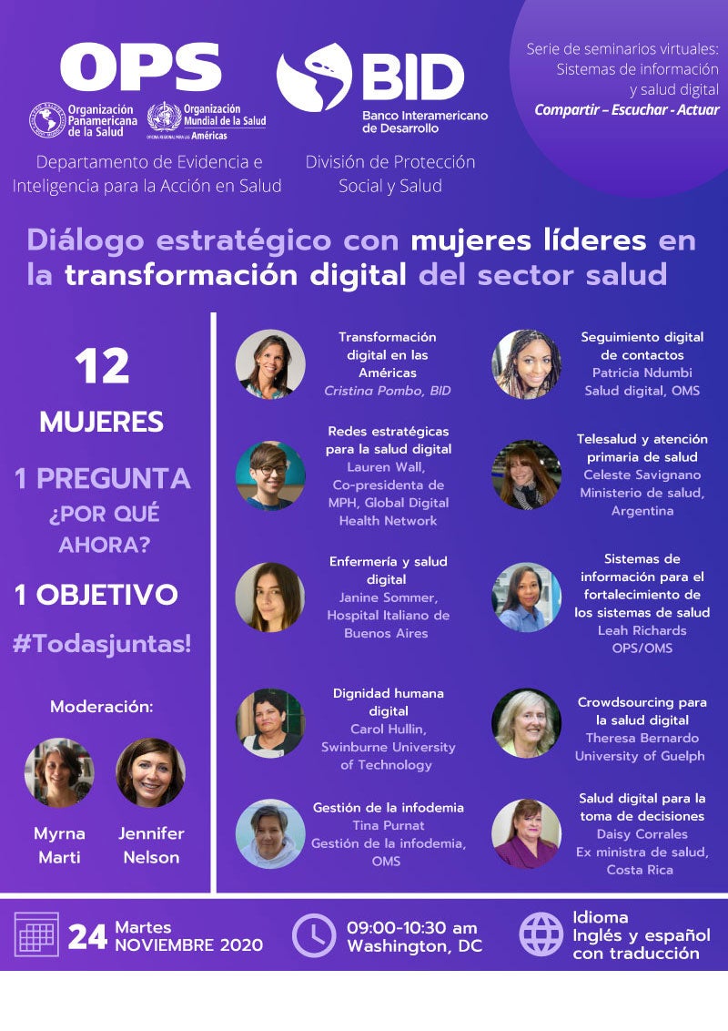 El seminario virtual contó con la participación de 12 mujeres, todas líderes en el área de salud digital, quienes responderán a una pregunta: "¿Por qué ahora?" Una serie de podcasts destaca los principales puntos de las diferentes partcipaciones.