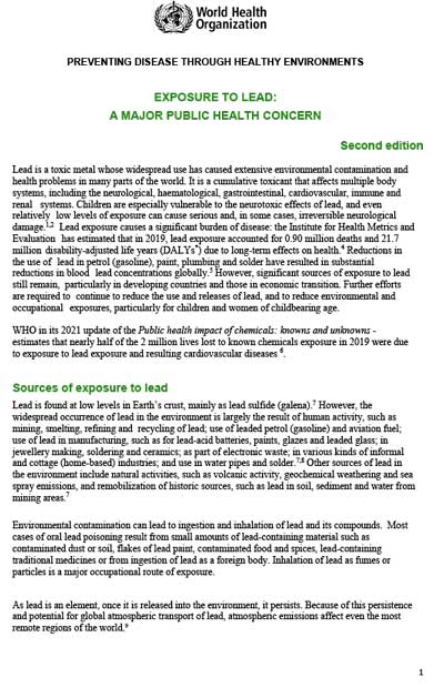 Exposure to lead: a major public health concern- 2nd Edition; 2021 (sólo en inglés)