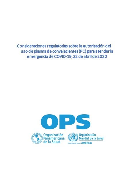 Consideraciones regulatorias sobre la autorización del uso de plasma convaleciente (PC) para atender la emergencia COVID-19