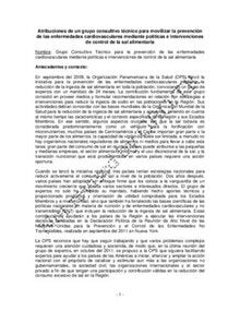 Atribuciones de un grupo consultivo técnico para movilizar la prevención de las enfermedades cardiovasculares mediante políticas e intervenciones de control de la sal alimentaria