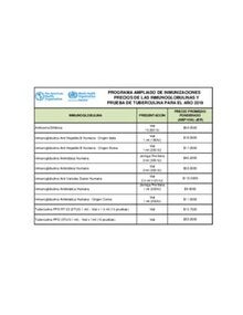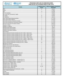 Precios de las Vacunas del Fondo Rotatorio de la OPS para el año 2019