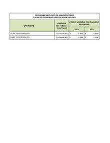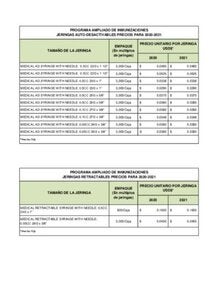 Precios de jeringas del Fondo Rotatorio, 2020-2021