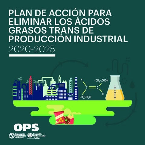 La Organización Mundial de la Salud (OMS) y la Organización Panamericana de la Salud (OPS) recomiendan la eliminación de los ácidos grasos trans producidos industrialmente (AGT-PI) para prevenir enfermedades no transmisibles, como cardiopatías coronarias.