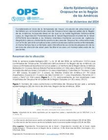 - Desde finales de 2023, se han reportado brotes de la enfermedad por el virus Oropouche en varios países de América del Sur y el Caribe, incluidas áreas sin historial previo de esta enfermedad. Consulte el tablero de casos actualizado.