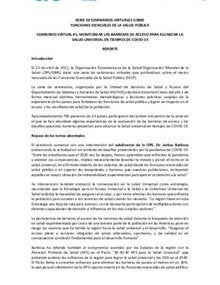 - Las barreras financieras fueron reportadas en el 15,1% de los casos, la disponibilidad inadecuada de recursos (ej. falta personal de salud, medicamentos e insumos) en el 8,4% de los casos y las barreras geográficas en el 5,4% de los casos.
