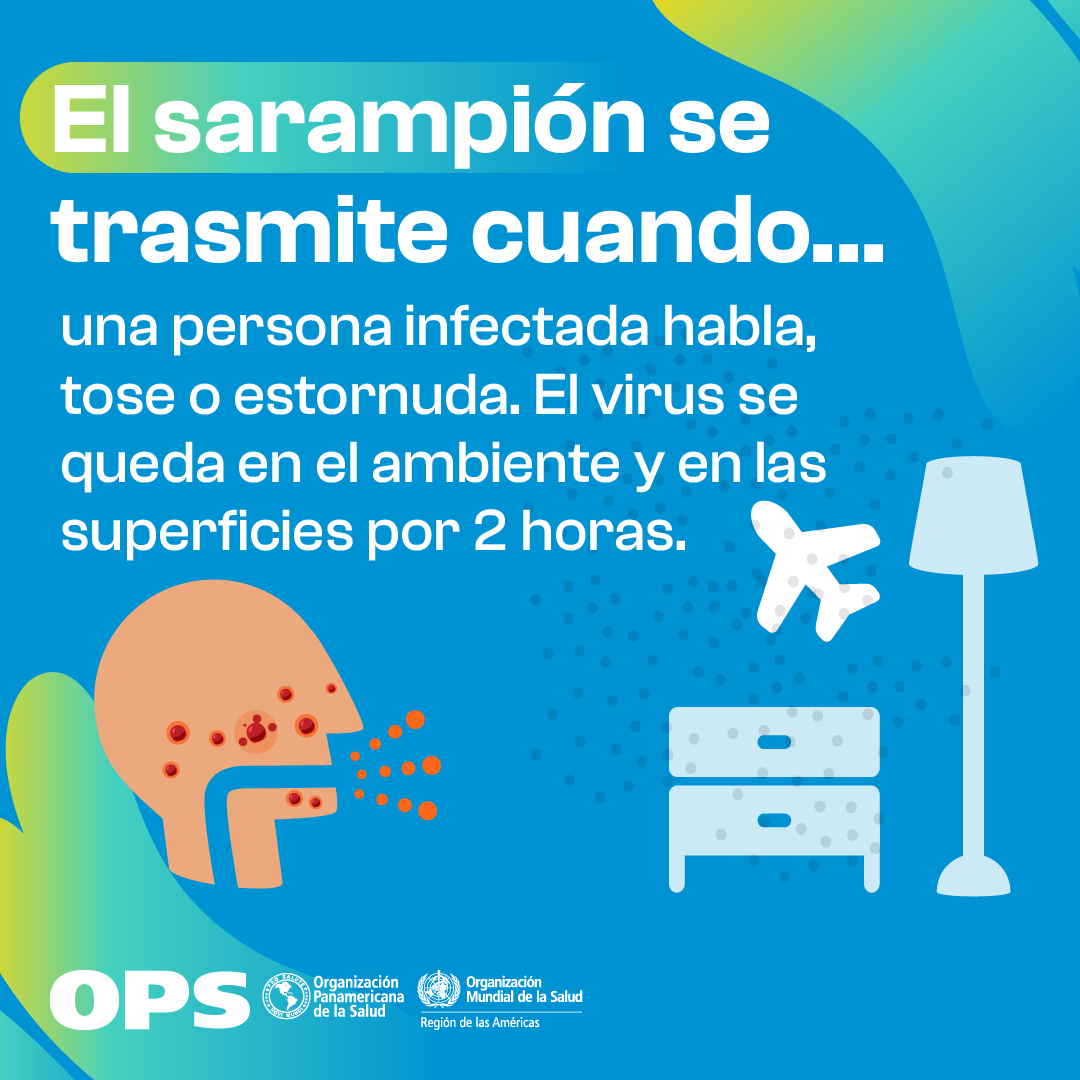 El virus del sarampión es muy contagioso y se propaga por la tos y los estornudos, el contacto personal íntimo o el contacto directo con secreciones nasales o faríngeas infectadas.