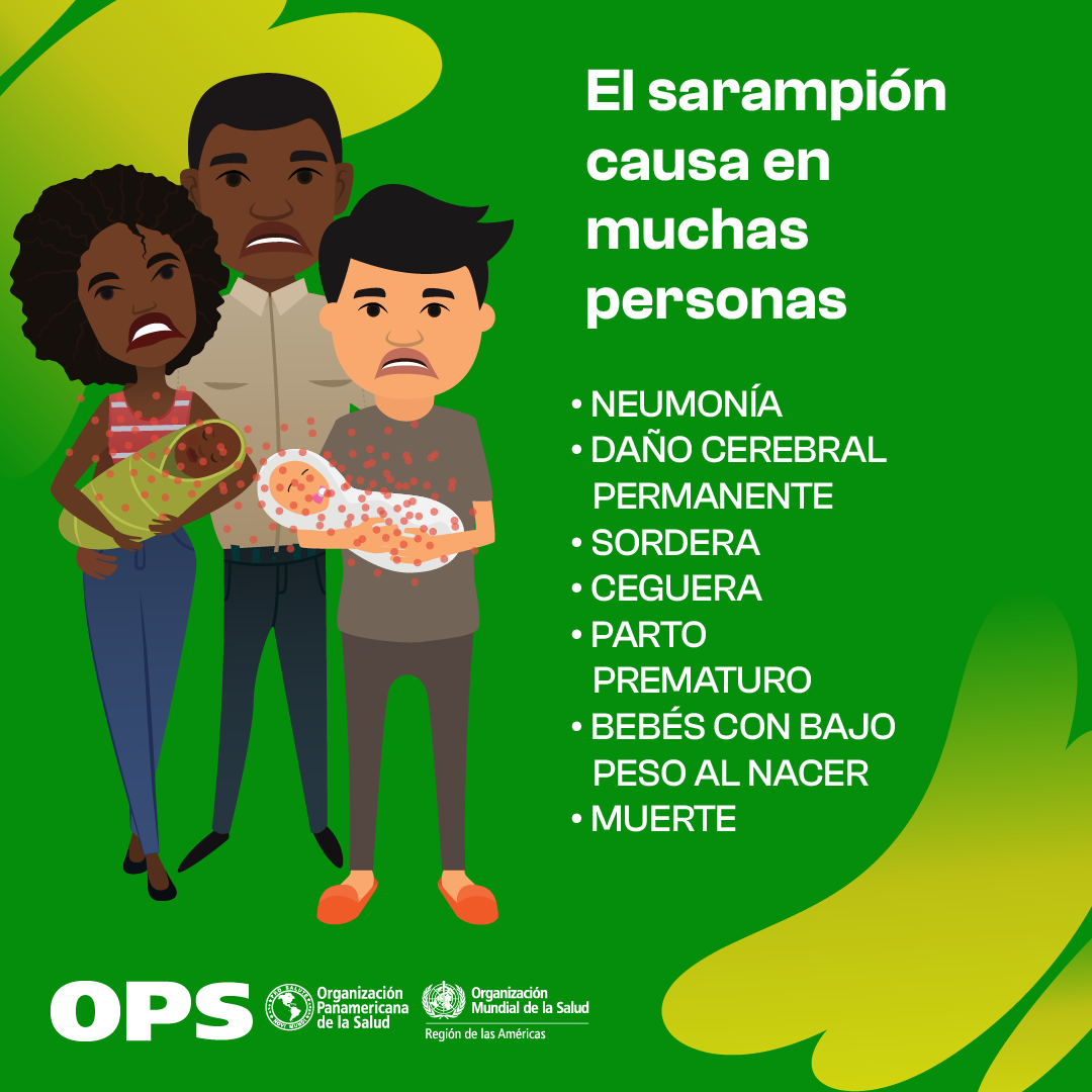 • El sarampión es una enfermedad viral muy contagiosa que afecta sobre todo a los niños y puede causar severos problemas de salud, incluyendo diarrea intensa, infecciones de oído, ceguera, neumonía y encefalitis (inflamación del cerebro). Algunas de estas complicaciones pueden llevar a la muerte.