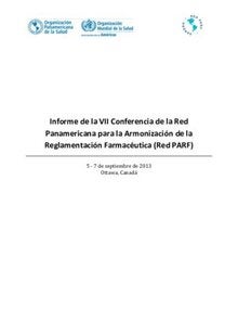 El informe: VII Conferencia de la Red Panamericana para la Armonización de la Reglamentación Farmacéutica (Red PARF) 5-5 de septiembre del 2013. Ottawa, Canadá. [en inglés y español]