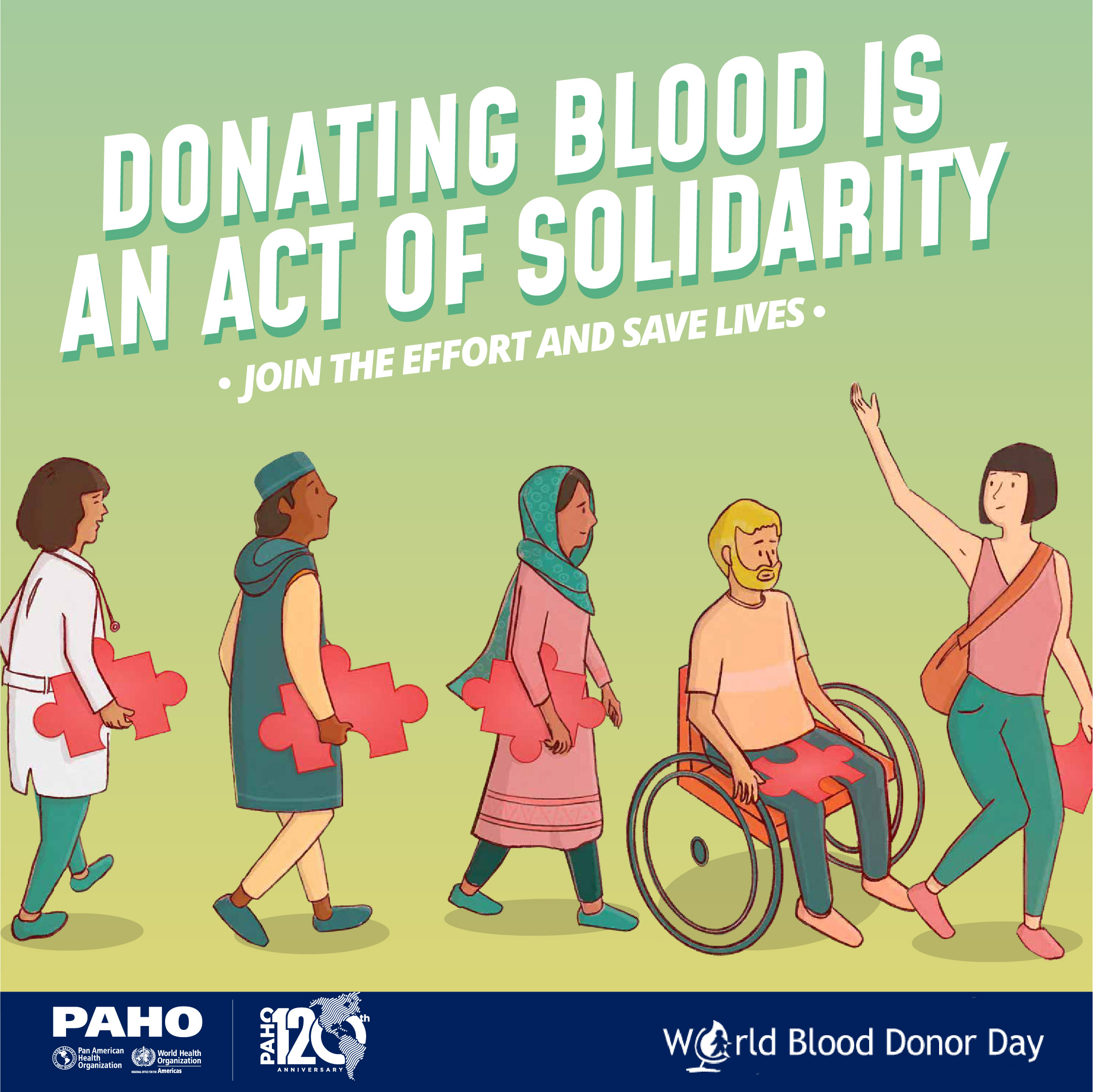 Pour 2022, le slogan de la Journée mondiale du don de sang sera "Le don de sang est un acte de solidarité. Joignez-vous à l'effort et sauvez des vies" pour attirer l'attention sur les rôles que jouent les dons de sang volontaires pour sauver des vies et renforcer la solidarité au sein des communautés.