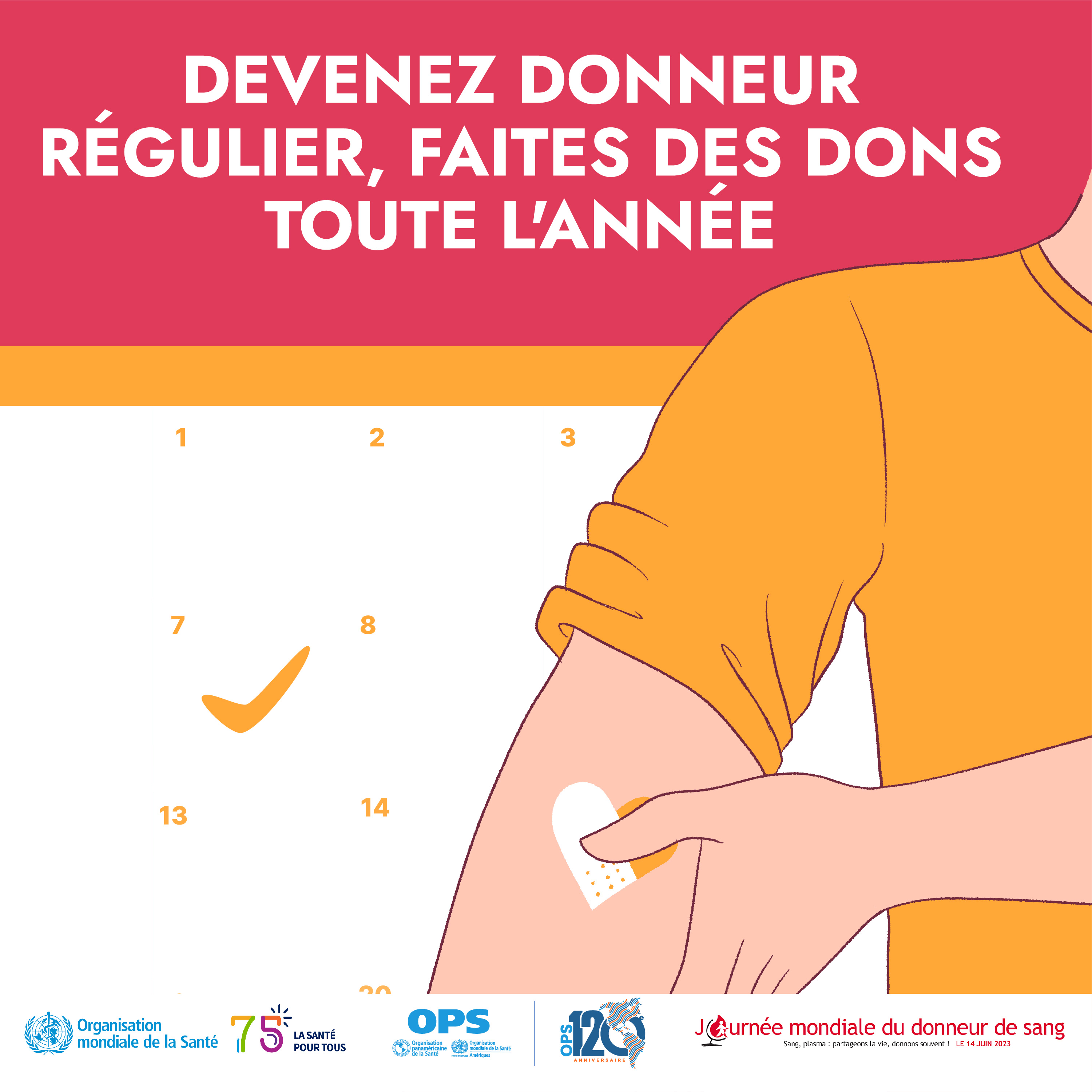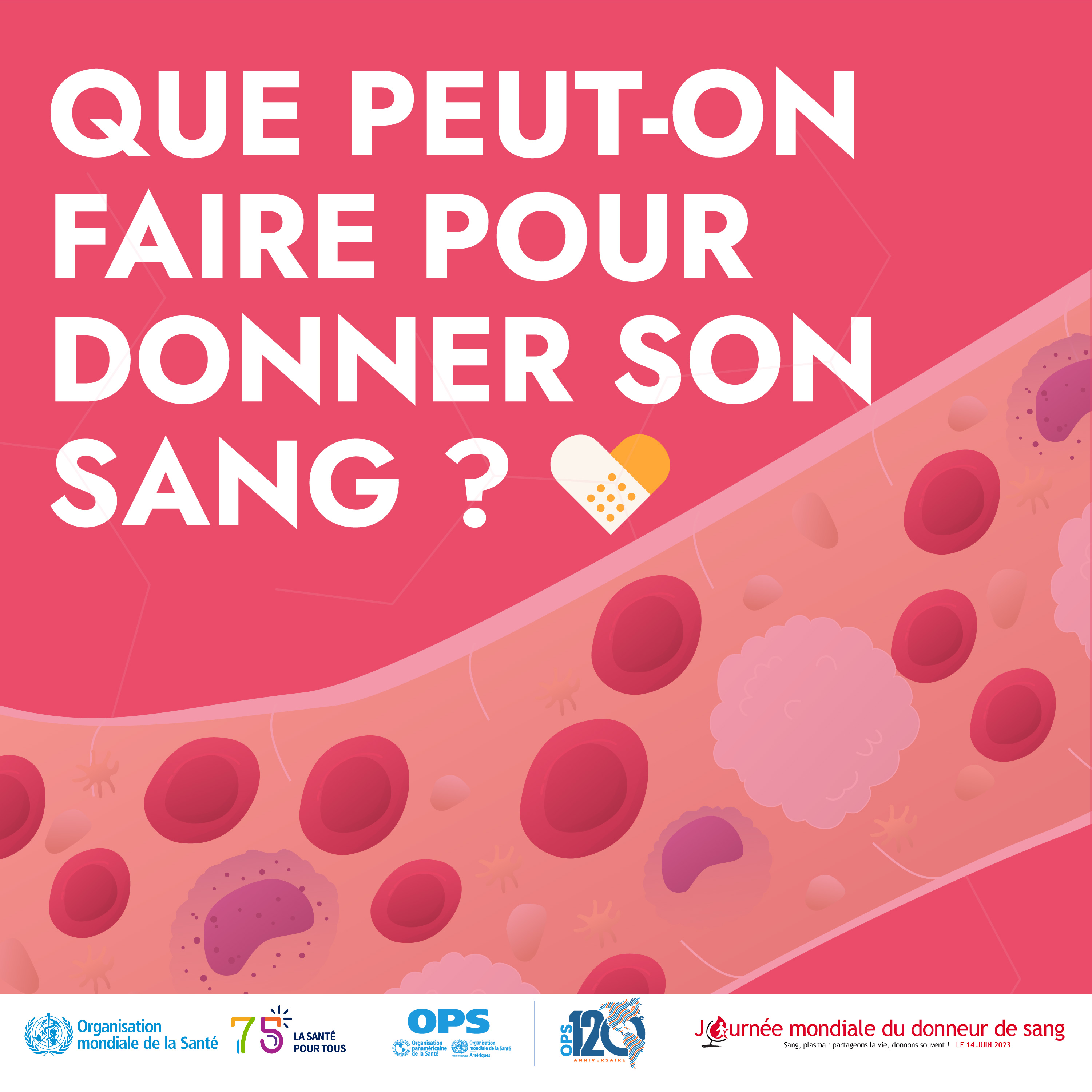 Le 14 juin 2023, la Journée mondiale du donneur de sang sera à nouveau célébrée dans le monde entier. Officiellement désignée comme événement annuel par l’Assemblée mondiale de la Santé en 2005, la Journée offre une occasion unique de célébrer et de remercier les donneurs de sang volontaires du monde entier pour leurs dons et elle est devenue l’axe central de la mobilisation en vue d’assurer l’accès universel à des transfusions sanguines sûres.