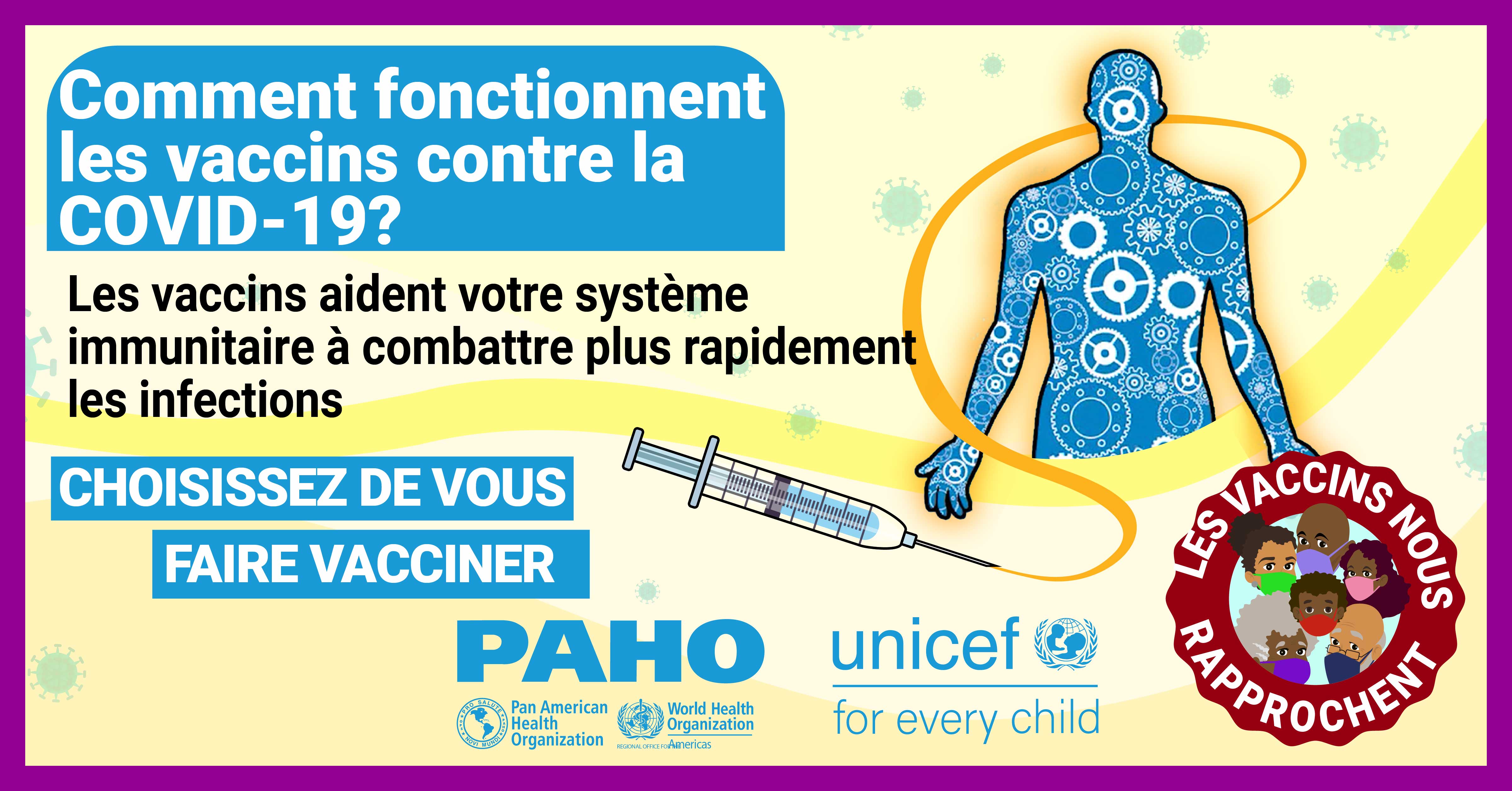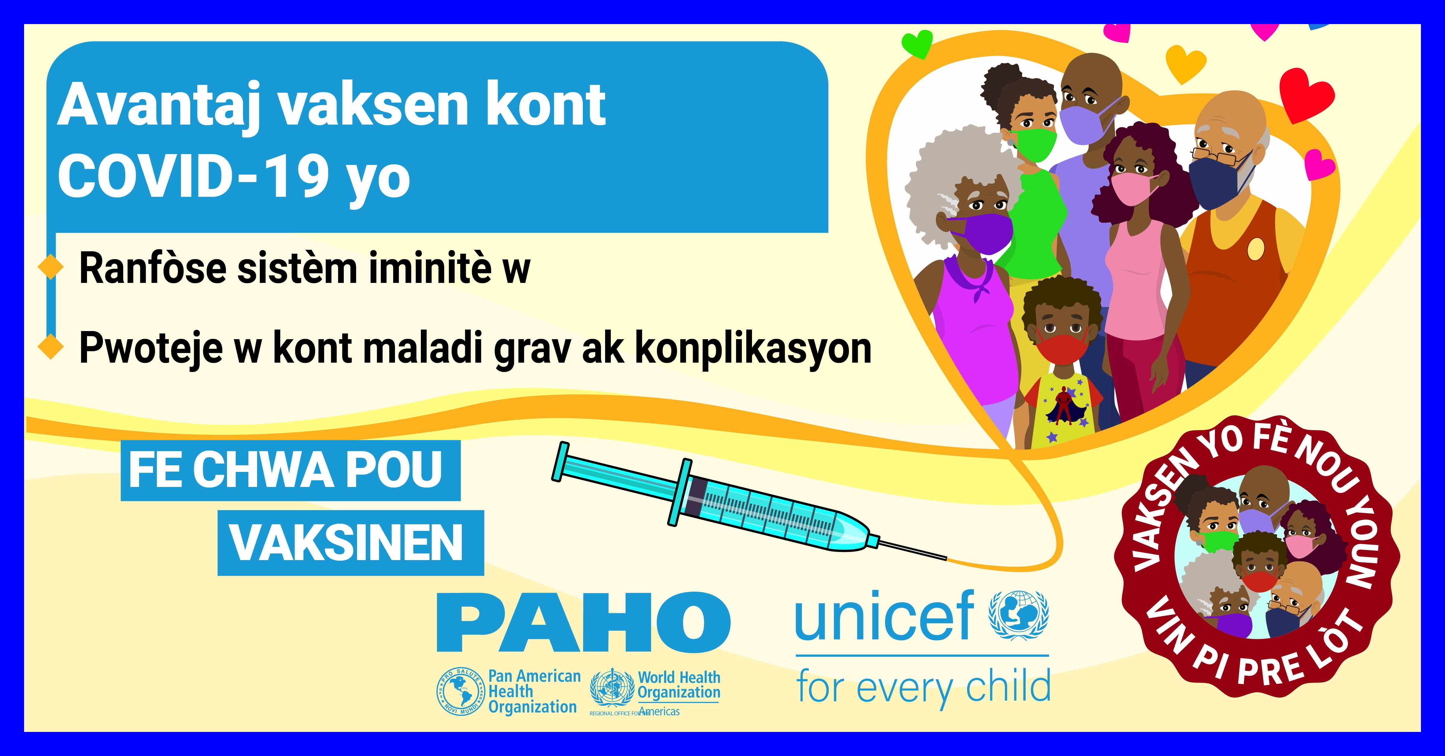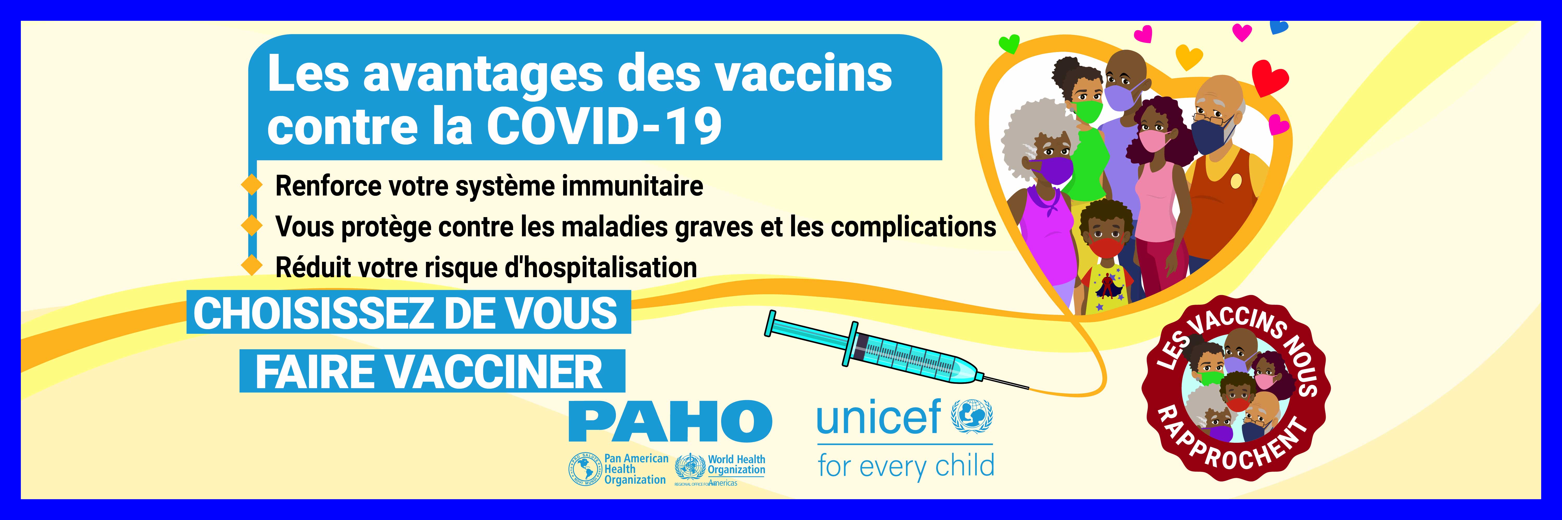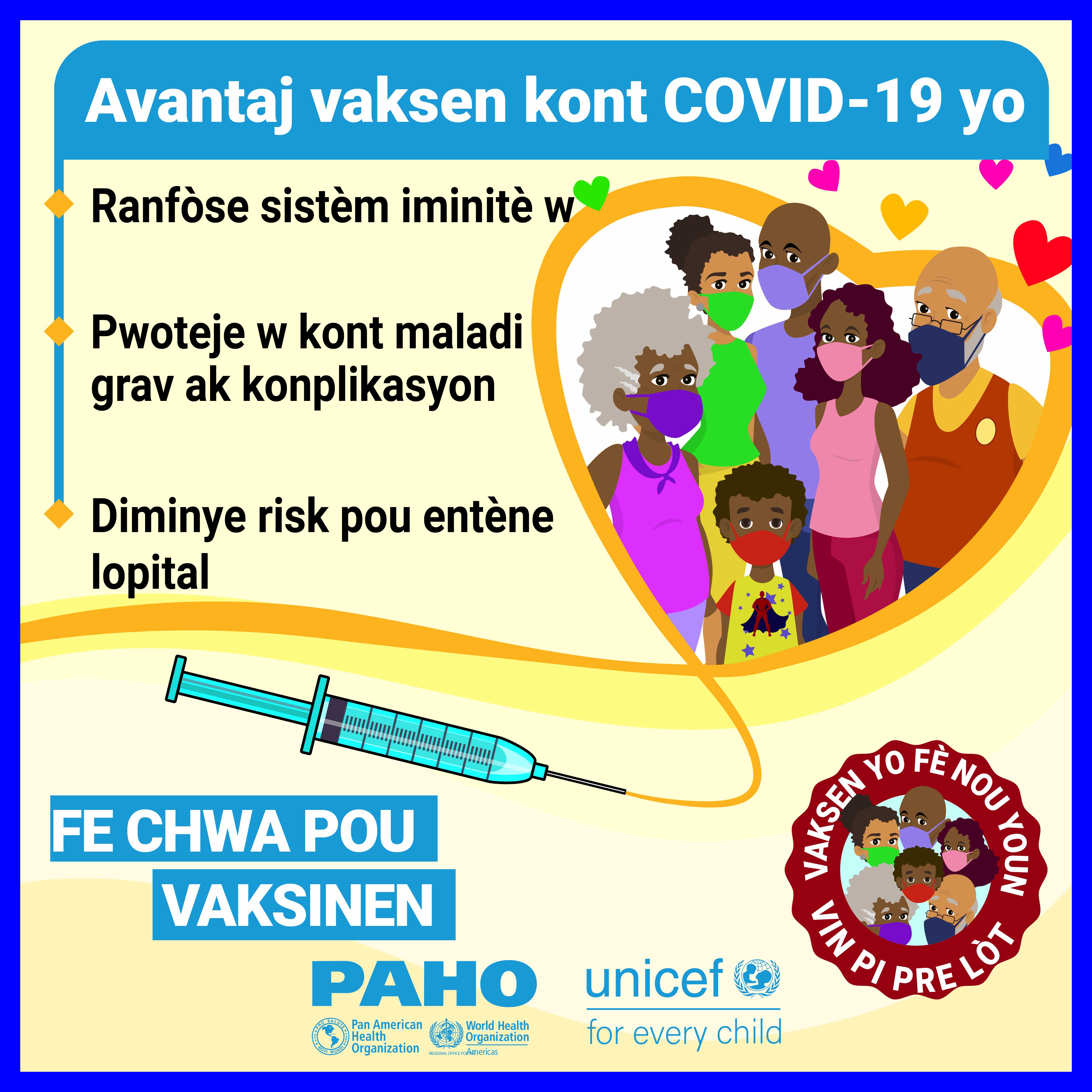 Dans la plupart des pays, les vaccins ne sont pas obligatoires et, par conséquent, la volonté du public de se faire vacciner contre le COVID-19 est une priorité élevée pour atteindre l'objectif d'immunité collective. Alors que nous cherchons à remédier à la vacillation vaccinale liée aux vaccins COVID-19 dans les Caraïbes et conformément à la demande formulée par certains États membres, l'Organisation panaméricaine de la santé (OPS) en collaboration avec le Fonds d'urgence des Nations Unies pour l'enfance (UNICEF) a développé des supports de communication pour combler certaines des lacunes dans les connaissances et les préoccupations concernant les vaccins COVID-19. Publiés le 21 mai 2021, ces supports de communication comprennent des vidéos, des cartes de réseaux sociaux et des annonces à la radio de service public. Les principaux sujets abordés sont:
