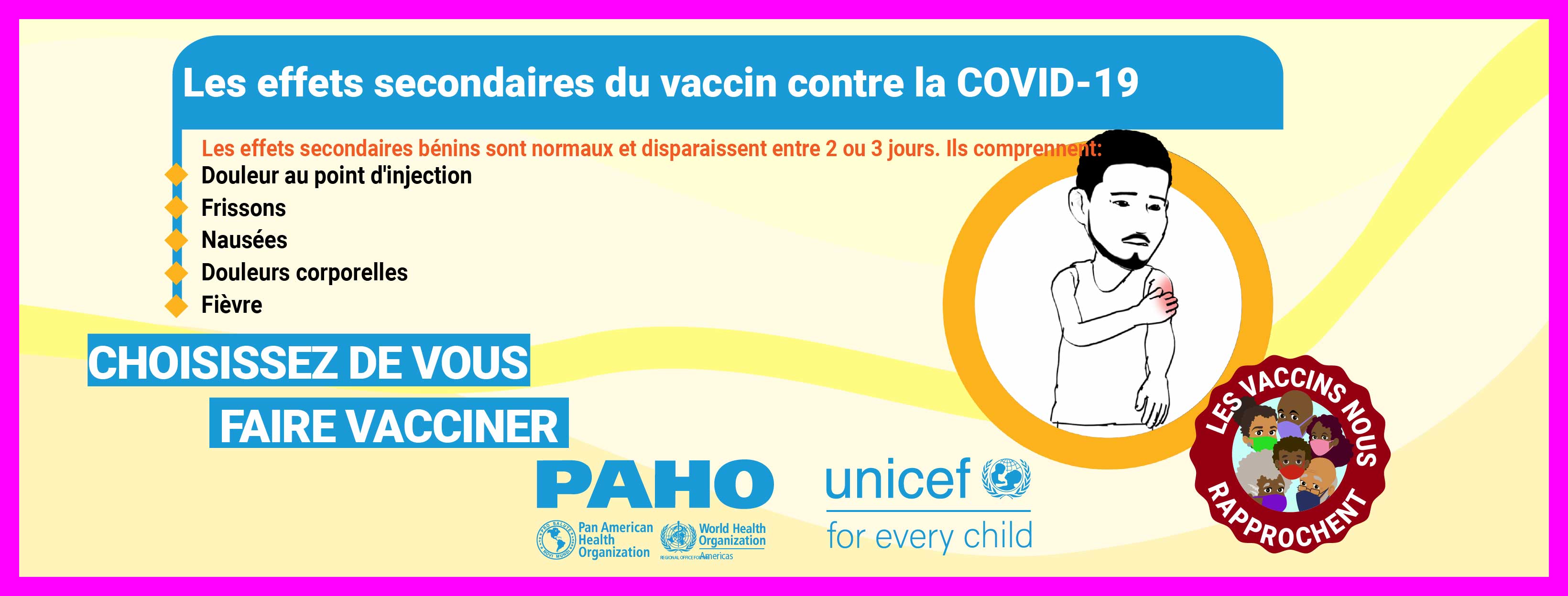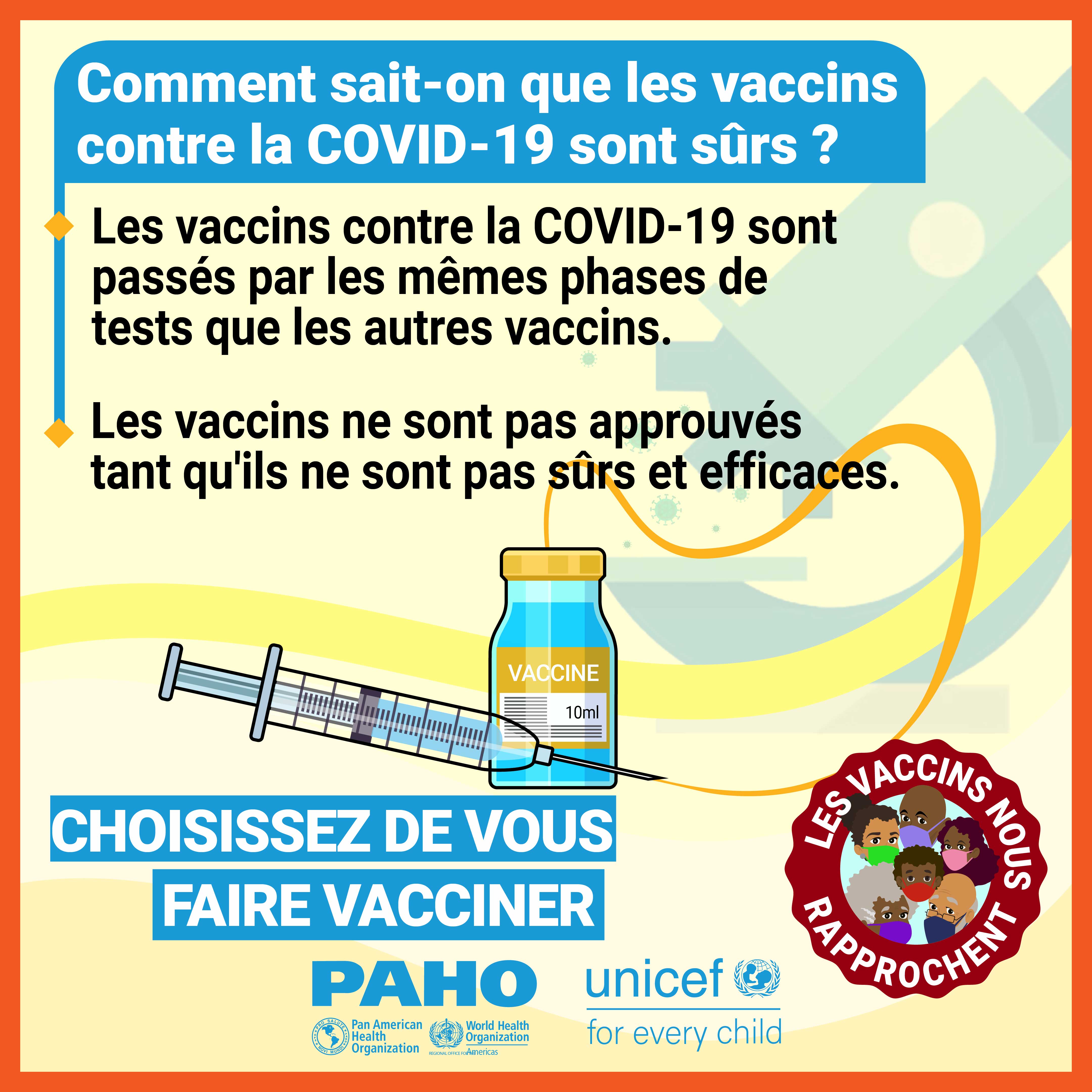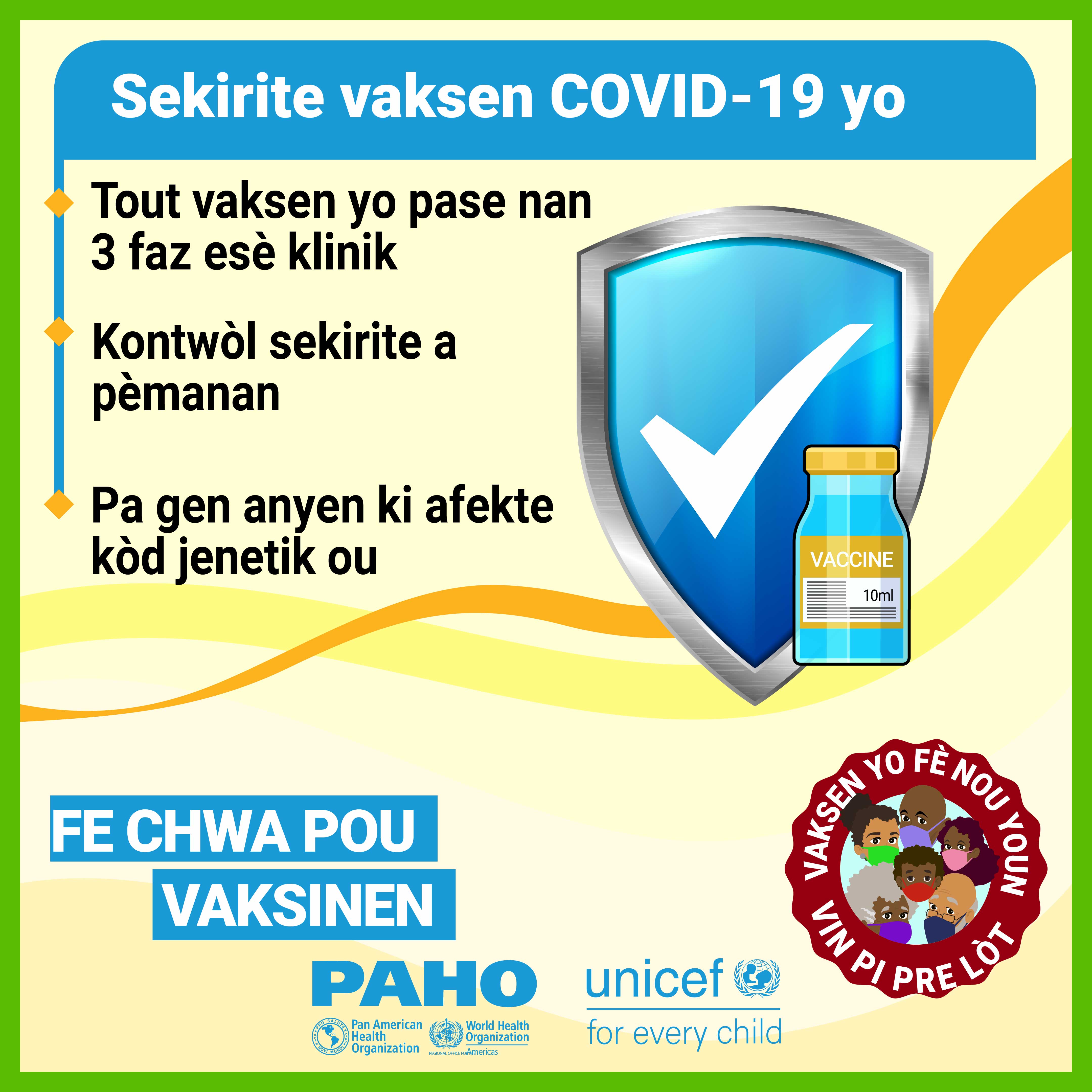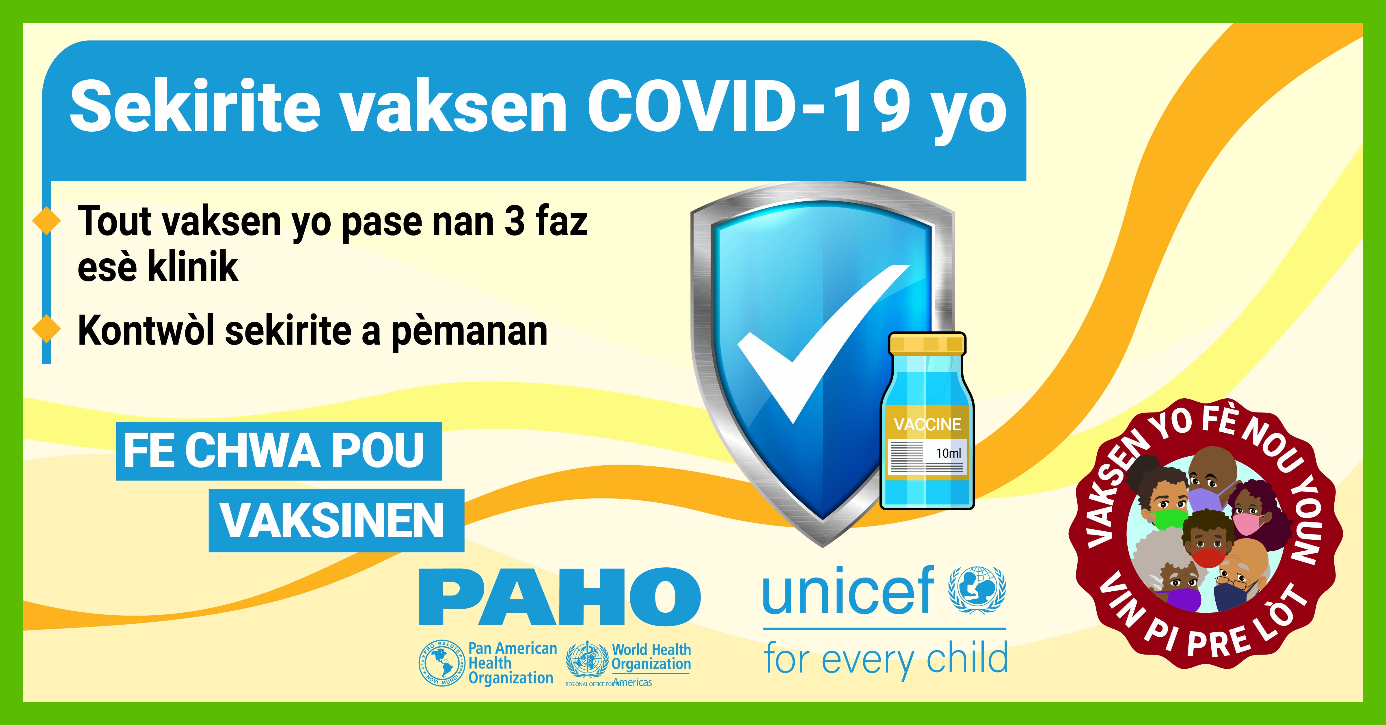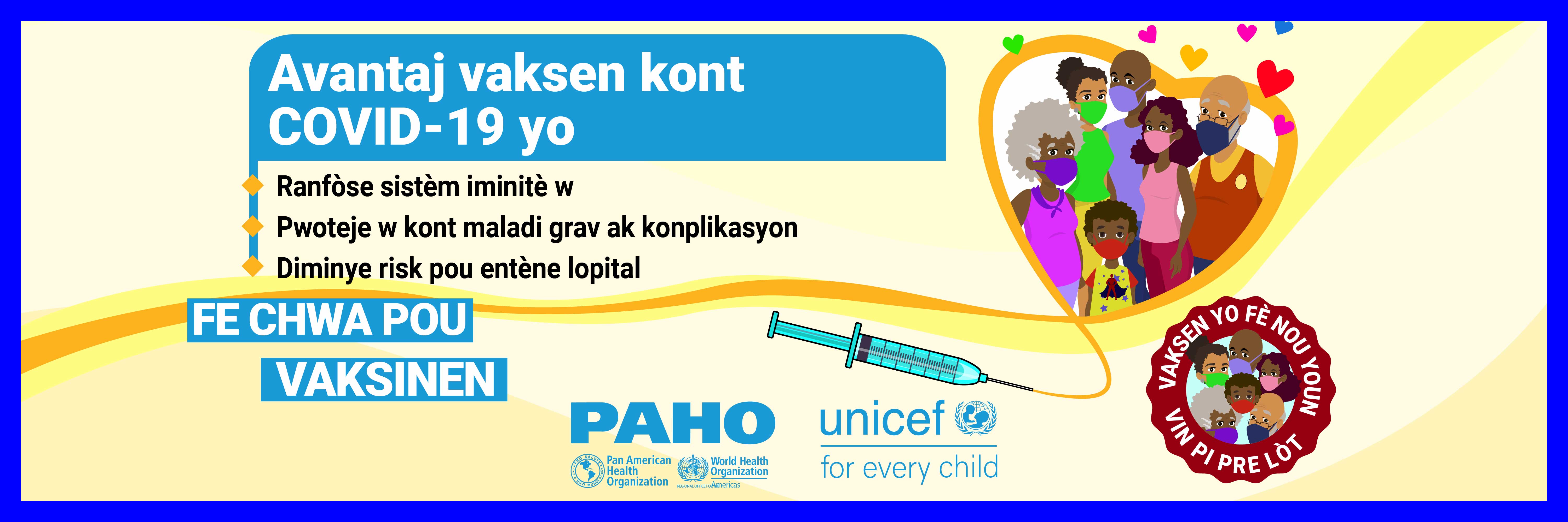 Dans la plupart des pays, les vaccins ne sont pas obligatoires et, par conséquent, la volonté du public de se faire vacciner contre le COVID-19 est une priorité élevée pour atteindre l'objectif d'immunité collective. Alors que nous cherchons à remédier à la vacillation vaccinale liée aux vaccins COVID-19 dans les Caraïbes et conformément à la demande formulée par certains États membres, l'Organisation panaméricaine de la santé (OPS) en collaboration avec le Fonds d'urgence des Nations Unies pour l'enfance (UNICEF) a développé des supports de communication pour combler certaines des lacunes dans les connaissances et les préoccupations concernant les vaccins COVID-19. Publiés le 21 mai 2021, ces supports de communication comprennent des vidéos, des cartes de réseaux sociaux et des annonces à la radio de service public. Les principaux sujets abordés sont: