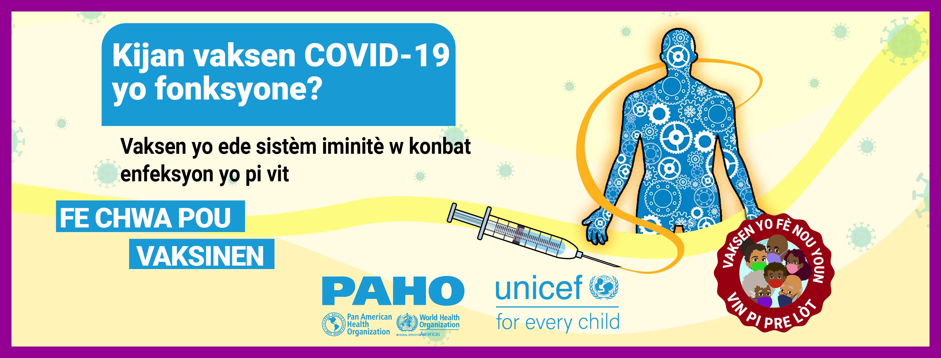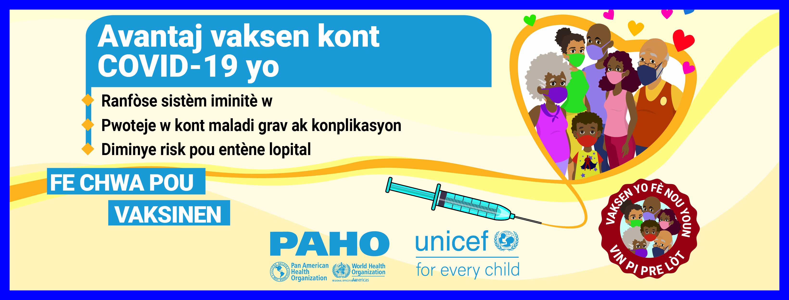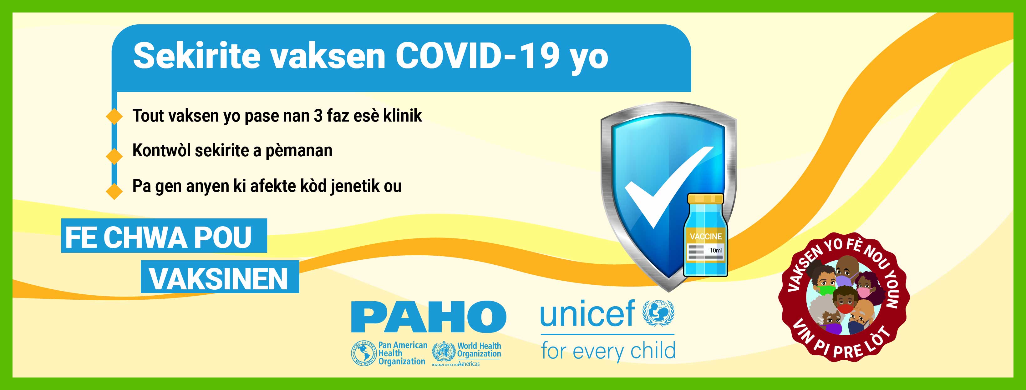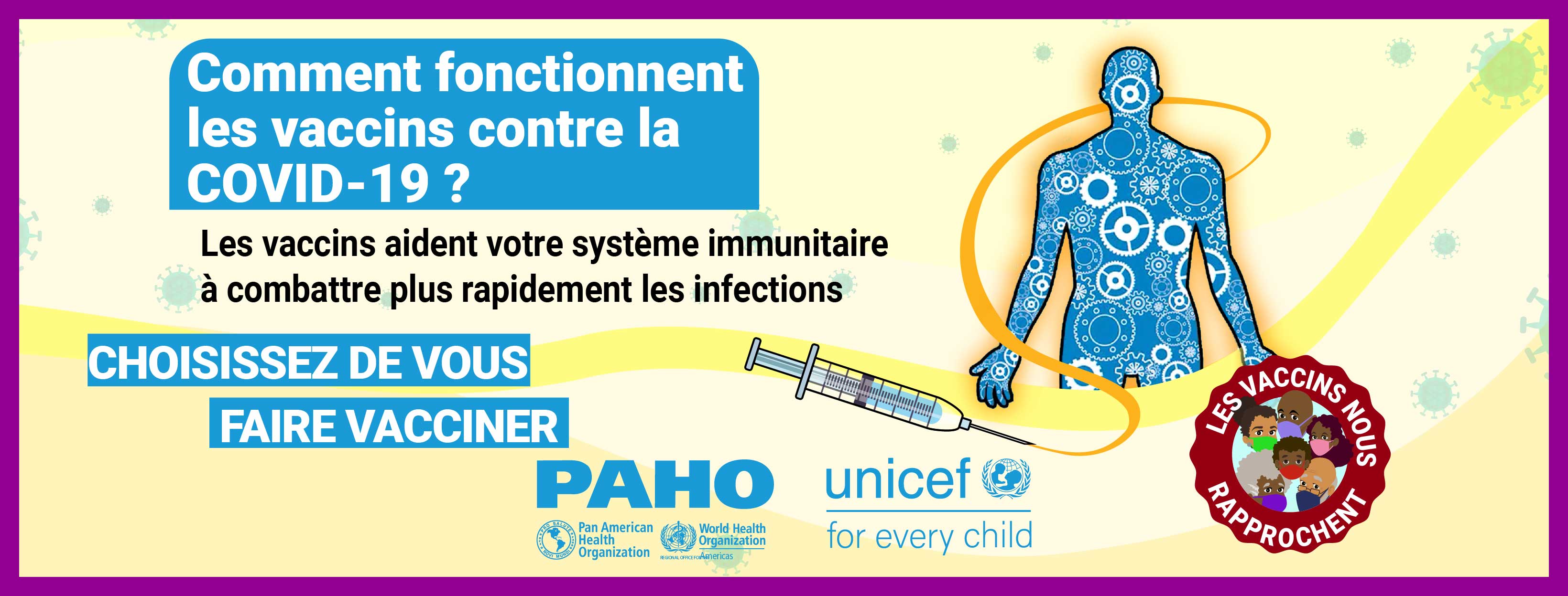 Dans la plupart des pays, les vaccins ne sont pas obligatoires et, par conséquent, la volonté du public de se faire vacciner contre le COVID-19 est une priorité élevée pour atteindre l'objectif d'immunité collective. Alors que nous cherchons à remédier à la vacillation vaccinale liée aux vaccins COVID-19 dans les Caraïbes et conformément à la demande formulée par certains États membres, l'Organisation panaméricaine de la santé (OPS) en collaboration avec le Fonds d'urgence des Nations Unies pour l'enfance (UNICEF) a développé des supports de communication pour combler certaines des lacunes dans les connaissances et les préoccupations concernant les vaccins COVID-19. Publiés le 21 mai 2021, ces supports de communication comprennent des vidéos, des cartes de réseaux sociaux et des annonces à la radio de service public. Les principaux sujets abordés sont: