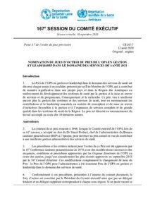 CE167/7 - Nomination du Jury d’octroi du Prix de l’OPS en gestion et leadership dans le domaine des services de santé 2021