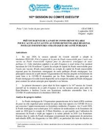 CE167/INF/3 - Prêt d’urgence de la part du Fonds renouvelable pour l’accès aux vaccins au Fond renouvelable régional pour les fournitures stratégiques de santé publique
