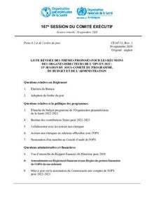 CE167/12, Rev. 1 - Thèmes proposés pour les réunions des Organes directeurs de l’OPS en 2021: (A) 15e session du Sous-comité du programme, du budget et de l’administration